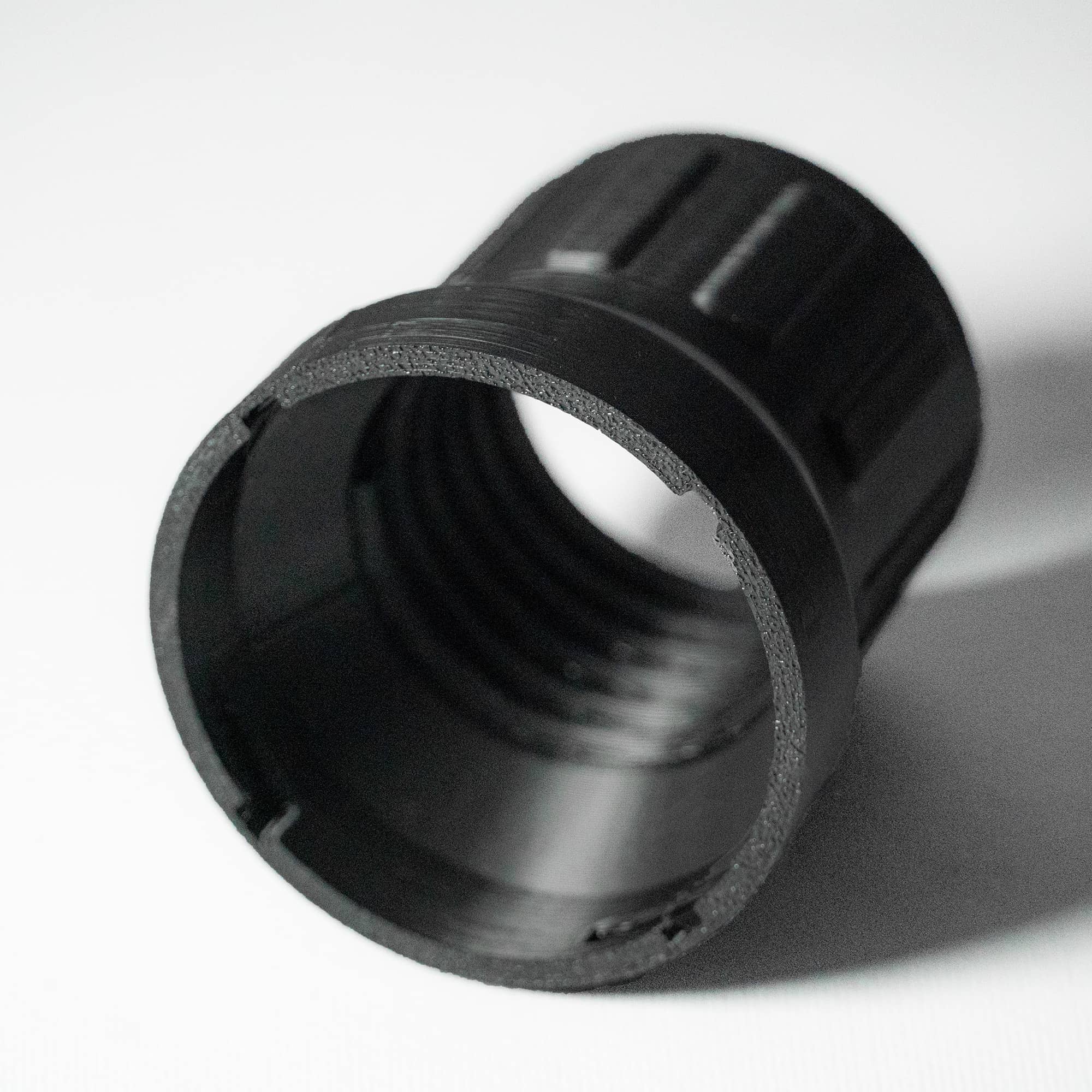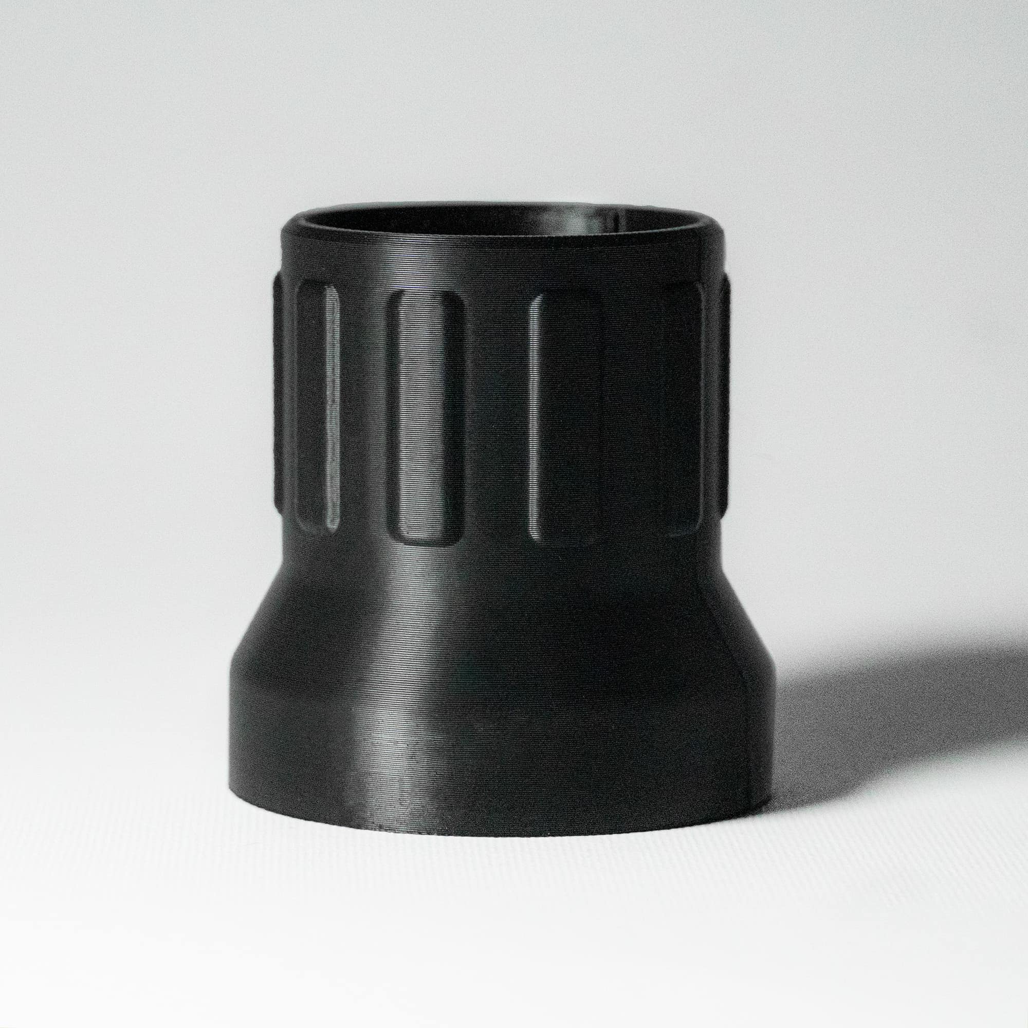 Stworzony w technologii druku 3D, adapter przeznaczony jest do łączenia elastycznego przewodu systemu odciągowego z osłoną stosowaną w piłach stołowych firmy Felder/Hammer.