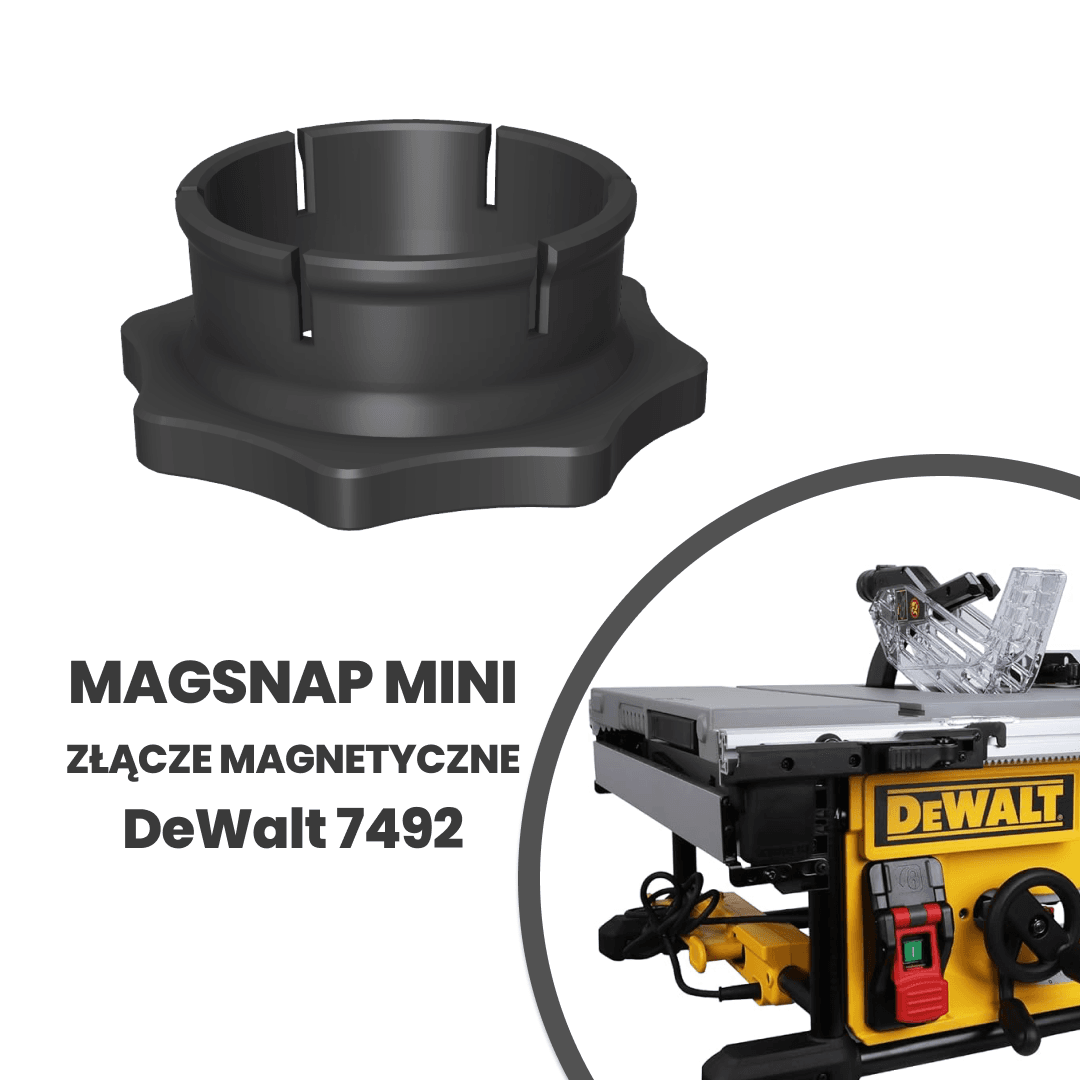 MINI Magnetyczne złącze do odciągu umożliwia szybkie i bezproblemowe podłączenie odciągu trocin do portów w maszynach stolarskich DeWalt DWE7492, dzięki magnesom neodymowym, przepinanie między maszynami jest niezwykle proste. Uniwersalny system dwukierunkowych magnesów zapewnia łatwość użycia w dowolnej pozycji, bez konieczności zwracania uwagi na biegunowość (+/-).