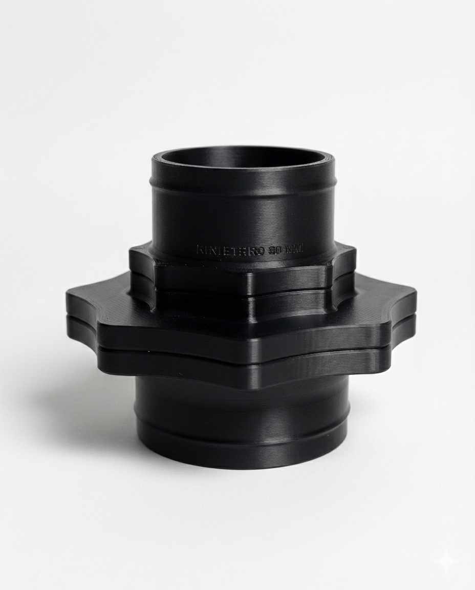 Adapter umożliwia bezproblemowe połączenie wersji MINI i STANDARD, wewnątrz zastosowano opływowy lejek przejściowy, który niweluje różnice średnic i prowadzi strumień powietrza płynnie, bez turbulencji. Efekt? Lepszy przepływ, mniejsze straty podciśnienia i wyraźnie wyższa skuteczność odciągu.
