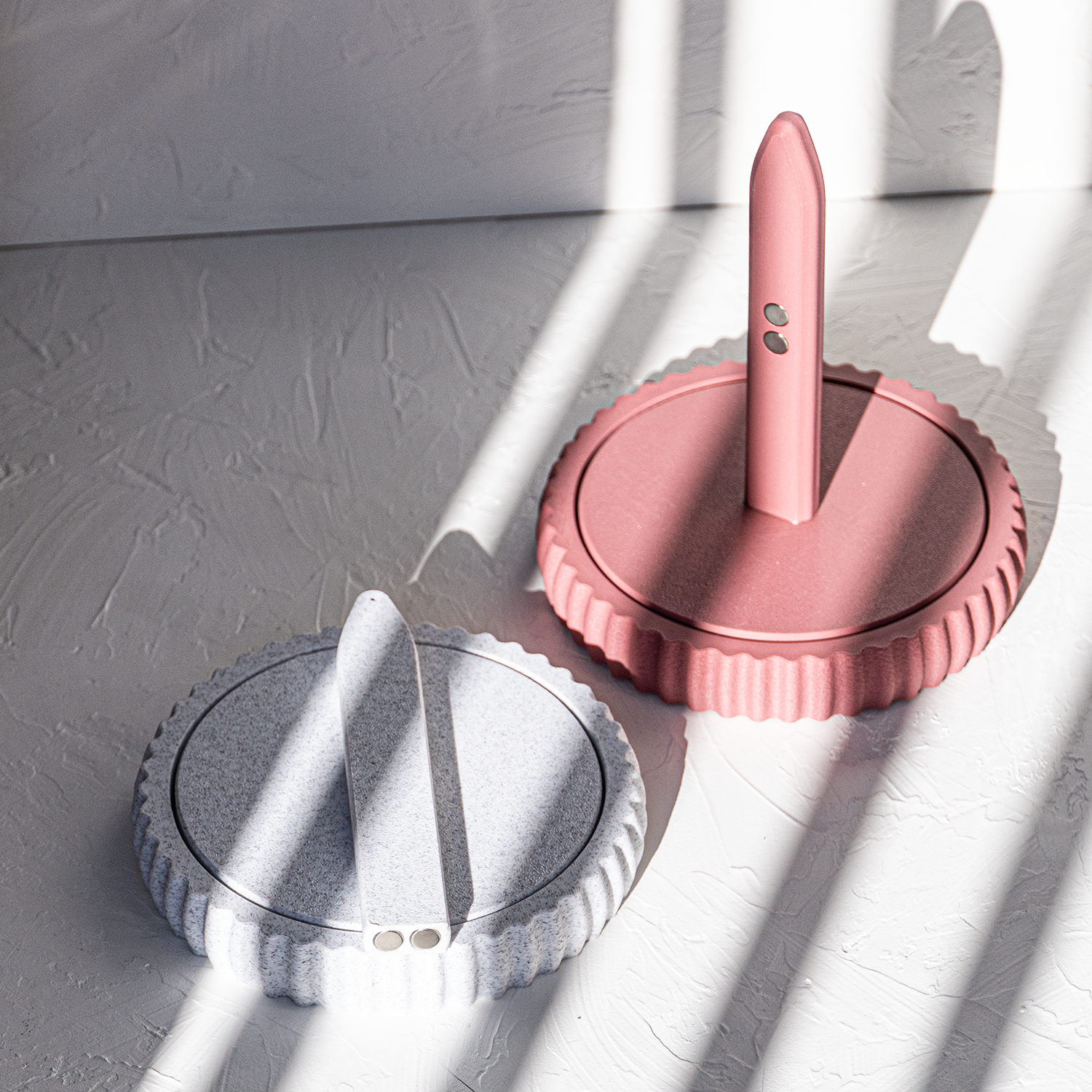 Podstawa spinnera wyposażona  jest w metalowe wypełnienie, które zostało osadzone podczas procesu drukowania, co zapewnia mu dociążenie, stabilność oraz zapobiega przesuwaniu się na śliskiej powierzchni.