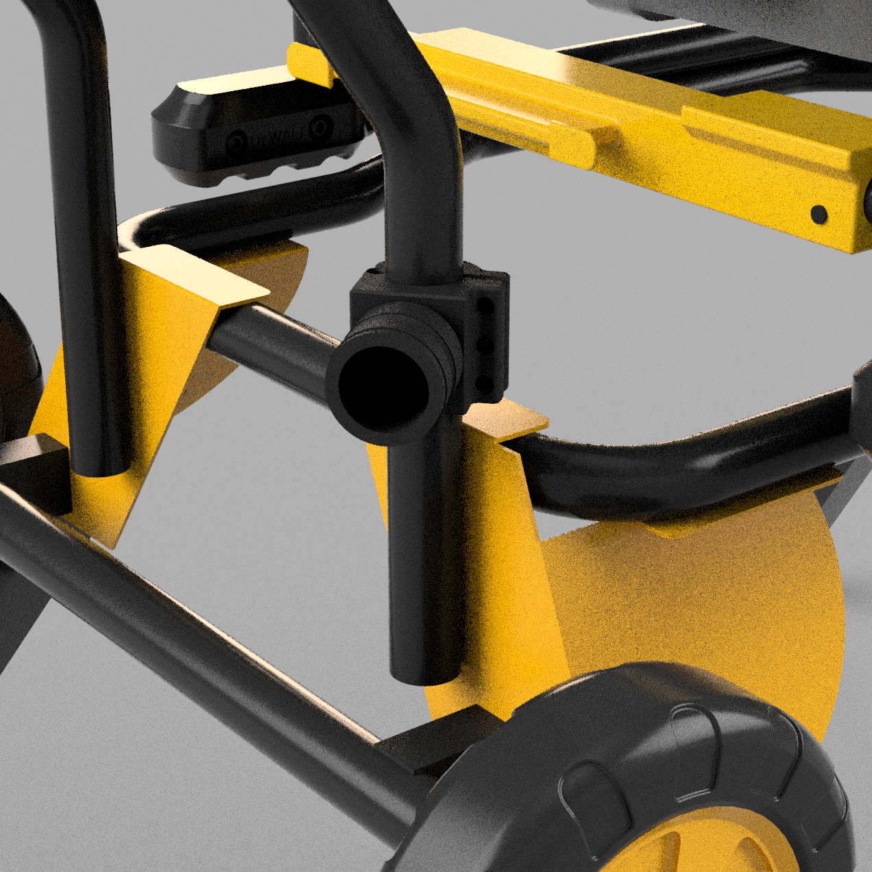 Montaż jest banalnie prosty – uchwyt stabilnie mocuje się na rurkach obudowy piły Dewalt, dzięki czemu jest zawsze pod ręką, gdy go potrzebujesz. Po prostu zdejmujesz adapter i wsuwasz go w dedykowane, bezpieczne miejsce.