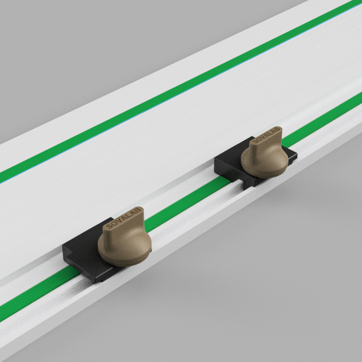 Ograniczniki do szyny prowadzącej są dostępne w zestawie po dwie sztuki, co umożliwia wykonywanie precyzyjnych i powtarzalnych cięć. Można je ustawić w pozycji początkowej i końcowej, co pozwala na ich użycie z piłą, frezarką lub innym narzędziem kompatybilnym z szyną prowadzącą. Dzięki temu prowadnice mogą „zapamiętać” lokalizacje, co umożliwia powtarzalne cięcia za pomocą różnych narzędzi.