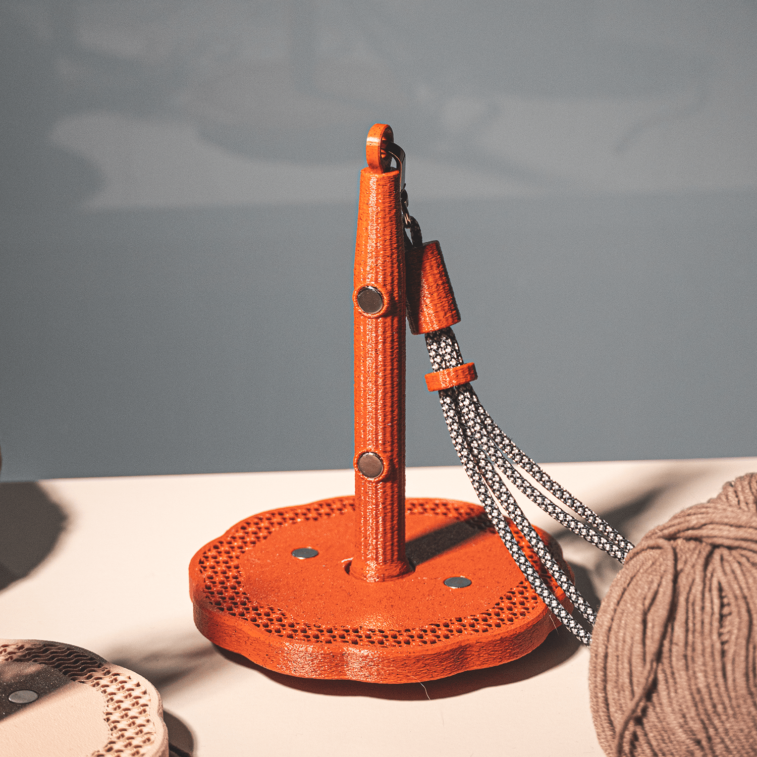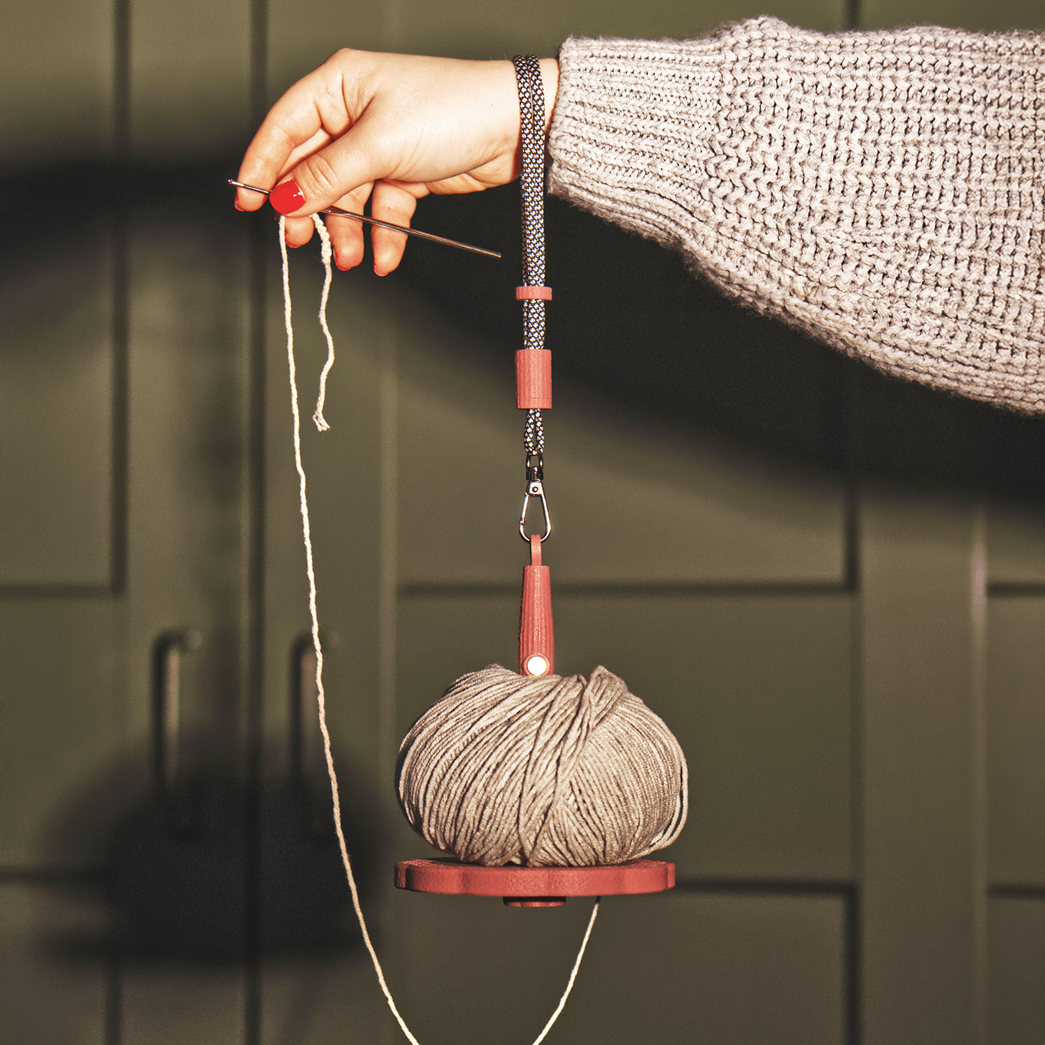 Nasz uchwyt na włóczkę jest lekki, nowoczesny i wyjątkowo przyjemny w użytkowaniu — idealny dla osób, które lubią mieć pod ręką akcesoria równie praktyczne, co estetyczne. Wystarczy założyć go na rękę, przypiąć do plecaka lub torby, a motek zawsze pozostanie tam, gdzie powinien.